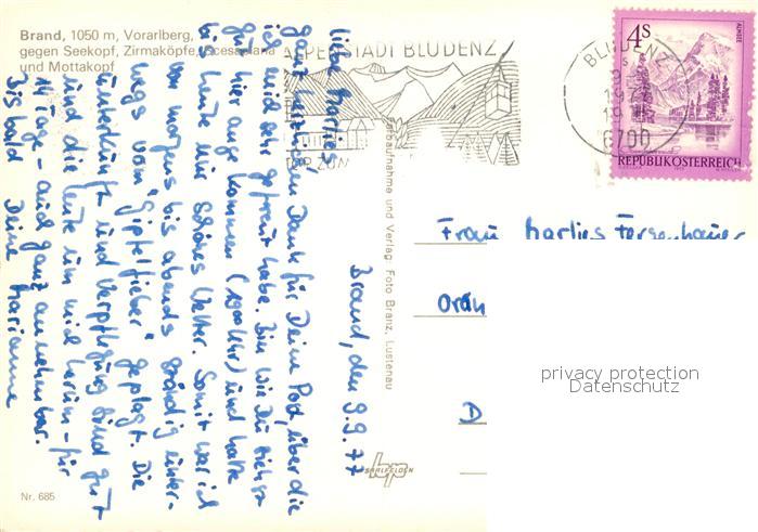 73362060 alte Postkarte Brand Vorarlberg Landschaftspanorama Allgaeuer Alpen postalisch gelaufen Erhaltung siehe scans [FriedD77] KatCode: 11390341080105