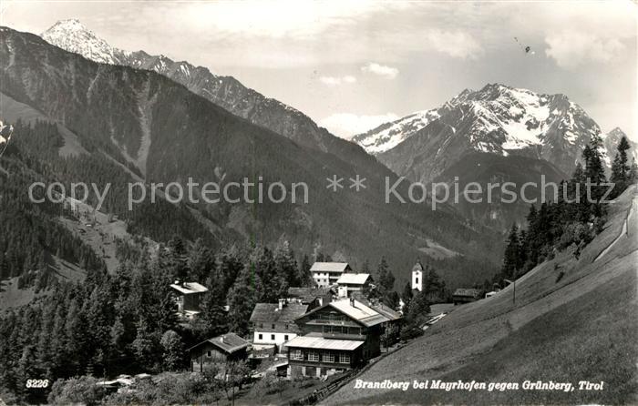 73136958 alte Postkarte Brandberg Tirol Bergdorf Blick gegen Gruenberg Alpenpanorama postalisch gelaufen Erhaltung siehe scans [FriedD77] KatCode: 11390335070903