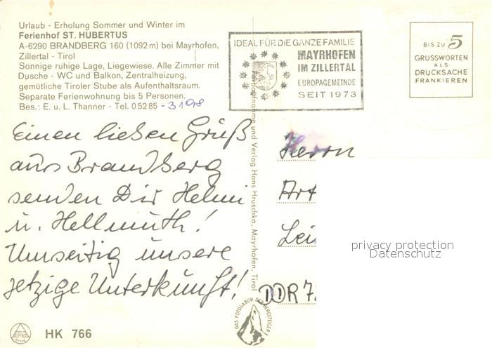 73722051 Brandberg Tirol Ferienhof St Hubertus postalisch nicht gelaufen Erhaltung siehe scans [WerneD78] KatCode: 11390335070903