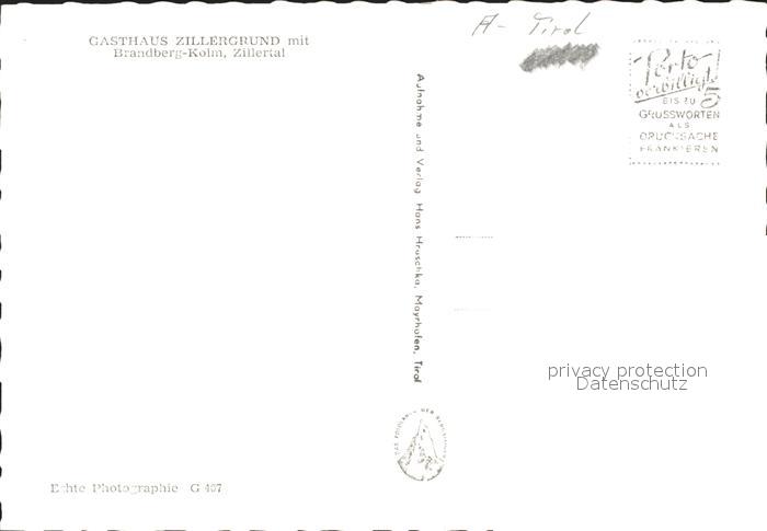 71812495 Brandberg Tirol Gasthaus Zillergrund Kolm postalisch nicht gelaufen Erhaltung siehe scans KatCode: 11390335070903