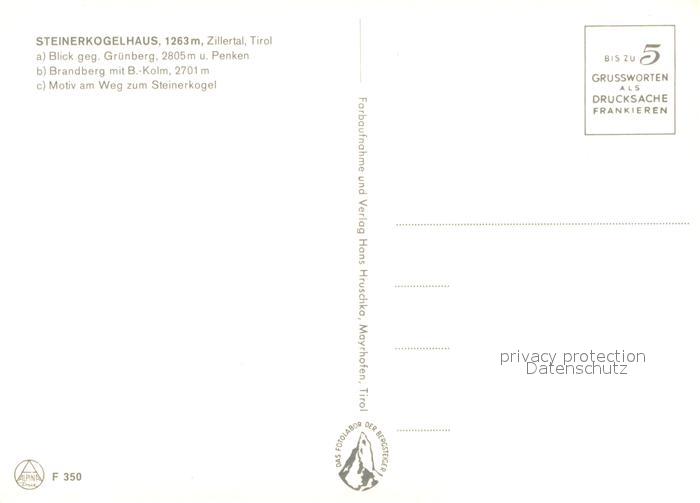 73652316 Brandberg Tirol Steinerkogelhaus Zillertal Blick gegen Gruenberg Penken Wanderweg zum Steinerkogel Zillertaler Alpen postalisch nicht gelaufen Erhaltung siehe scans [FriedD77] KatCode: 11390335070903