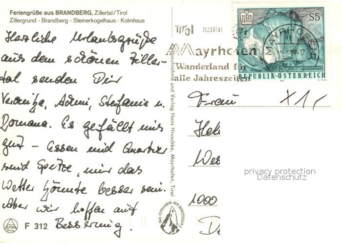 73314594 alte Postkarte Brandberg Tirol Zillertal Zillergrund Brandberg Steinerkogelhaus Kolmhaus postalisch gelaufen Erhaltung siehe scans [LiesaD40] KatCode: 11390335070903