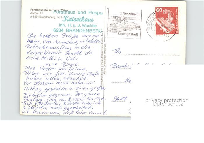 72496021 alte Postkarte Brandenberg Tirol Forsthaus Kaiserhaus postalisch gelaufen Erhaltung siehe scans KatCode: 11390335070504