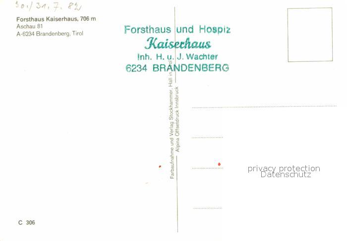 72755534 Brandenberg Tirol Forsthaus Kaiserhaus postalisch nicht gelaufen Erhaltung siehe scans [WerneD78] KatCode: 11390335070504