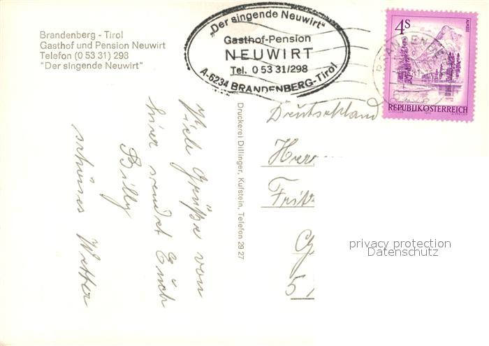 73266369 alte Postkarte Brandenberg Tirol Gasthaus Pension Neuwirt postalisch gelaufen Erhaltung siehe scans [LiesaD40] KatCode: 11390335070504