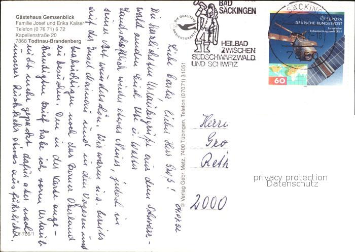 72419639 alte Postkarte Brandenberg Todtnau Gaestehaus Gemsenblick Schwarzwald postalisch gelaufen Erhaltung siehe scans KatCode: 11110008336087