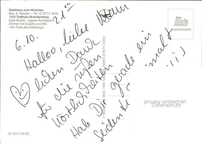 72599710 Brandenberg Todtnau Gasthaus zum Hirschen postalisch nicht gelaufen Erhaltung siehe scans [FriedD77] KatCode: 11110008336087