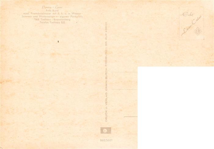 73927608 Brandenberg Todtnau Pension Garni Fritz Kurz postalisch nicht gelaufen Erhaltung siehe scans [WerneD78] KatCode: 11110008336087