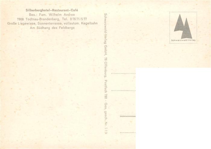 73892341 Brandenberg Todtnau Silberberghotel Restaurant Cafe postalisch nicht gelaufen Erhaltung siehe scans [WerneD78] KatCode: 11110008336087