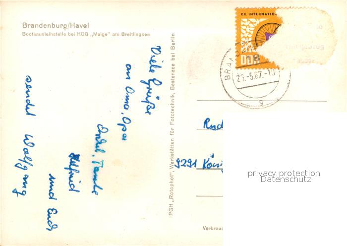 72985639 alte Postkarte Brandenburg Havel Bootsausleihstelle bei HOG Malge am Breitlingsee postalisch gelaufen Erhaltung siehe scans [FriedD77] KatCode: 11110012051000