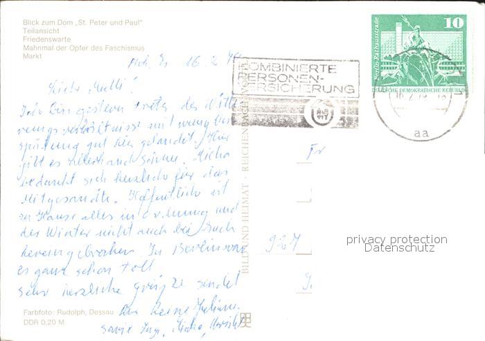 72423645 alte Postkarte Brandenburg Havel Dom St Peter und Paul Panorama Friedenswarte Mahnmal der Faschismusopfer Markt postalisch gelaufen Erhaltung siehe scans KatCode: 11110012051000
