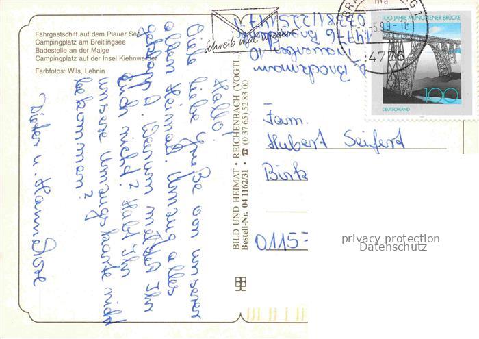 74042568 alte Postkarte BRANDENBURG HAVEL Fahrgastschiff Plauer See Campingplatz Breitlingsee Badestelle an der Malge Campingplatz Insel Kiehnwerder postalisch gelaufen Erhaltung siehe scans [FriedD77] KatCode: 11110012051000