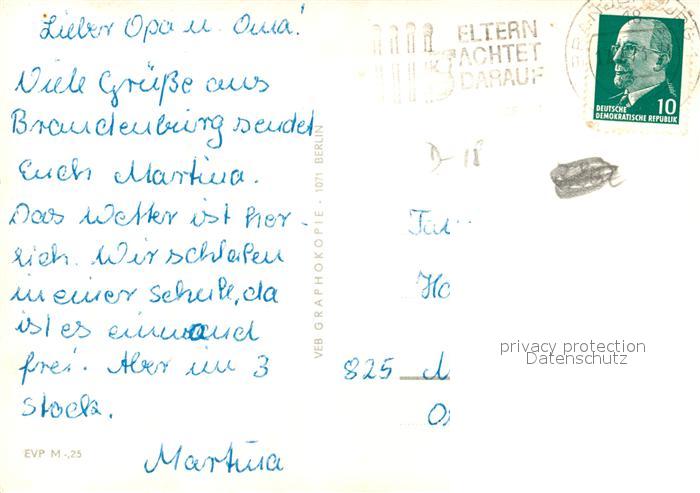 73310016 alte Postkarte Brandenburg Havel Friedenswarte Stadtpanorama Friedenstrasse Heinrich Heine Ufer Promenade am Fluss postalisch gelaufen Erhaltung siehe scans [FriedD77] KatCode: 11110012051000