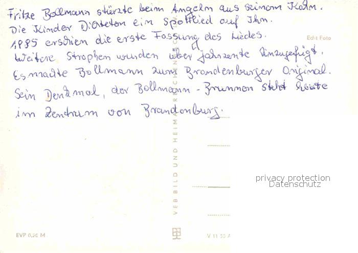 72925097 Brandenburg Havel Fritze Bollmann Brunnen postalisch nicht gelaufen Erhaltung siehe scans [WerneD78] KatCode: 11110012051000