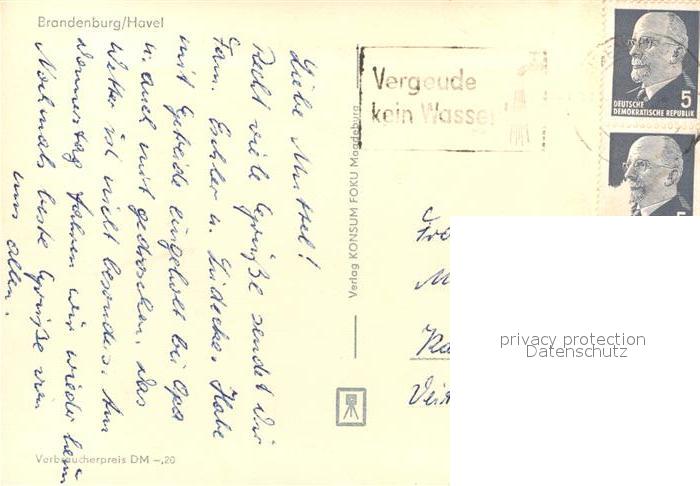 73317821 alte Postkarte Brandenburg Havel Jahrtausendbruecke Dom Turm Muehlendamm postalisch gelaufen Erhaltung siehe scans [FriedD77] KatCode: 11110012051000