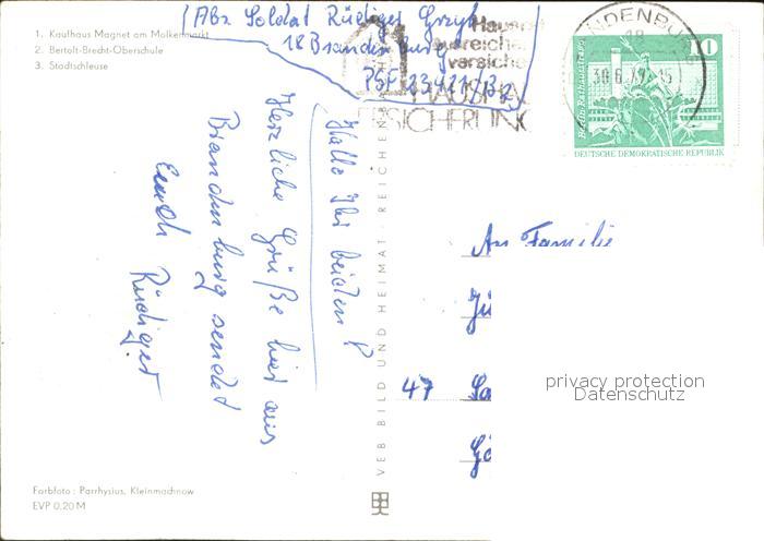 72016127 alte Postkarte Brandenburg Havel Kaufhaus Magnet Stadtschleuse postalisch gelaufen Erhaltung siehe scans KatCode: 11110012051000
