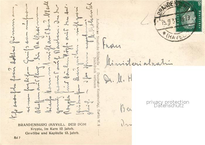 73283863 alte Postkarte Brandenburg Havel Krypta Gewoelbe Kapitelle postalisch gelaufen Erhaltung siehe scans [NatalD47] KatCode: 11110012051000