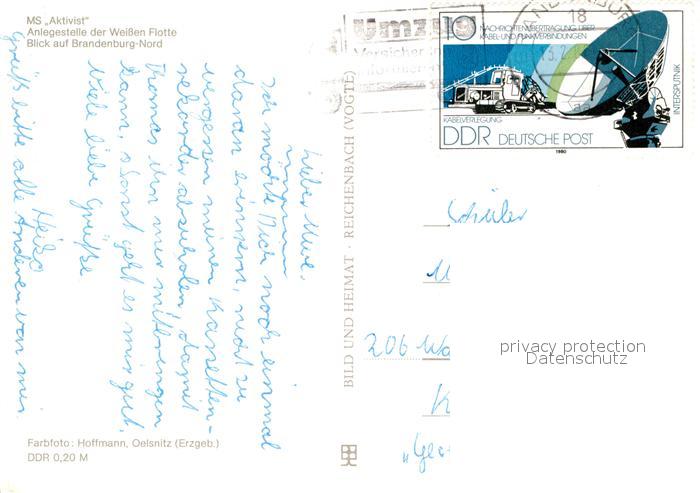 72950760 alte Postkarte Brandenburg Havel MS Aktivist Anlegestelle der Weissen Flotte Blick auf Brandenburg Nord postalisch gelaufen Erhaltung siehe scans [WerneD78] KatCode: 11110012051000