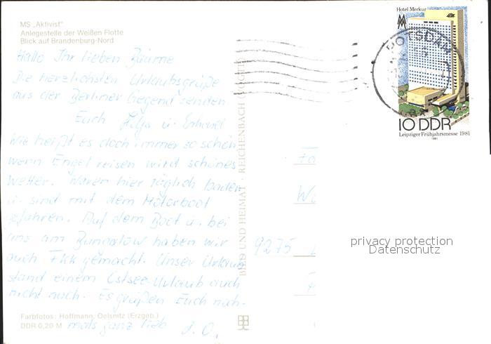 72316580 alte Postkarte Brandenburg Havel MS Aktivist Anlegestelle der Weissen Flotte Panorama postalisch gelaufen Erhaltung siehe scans KatCode: 11110012051000