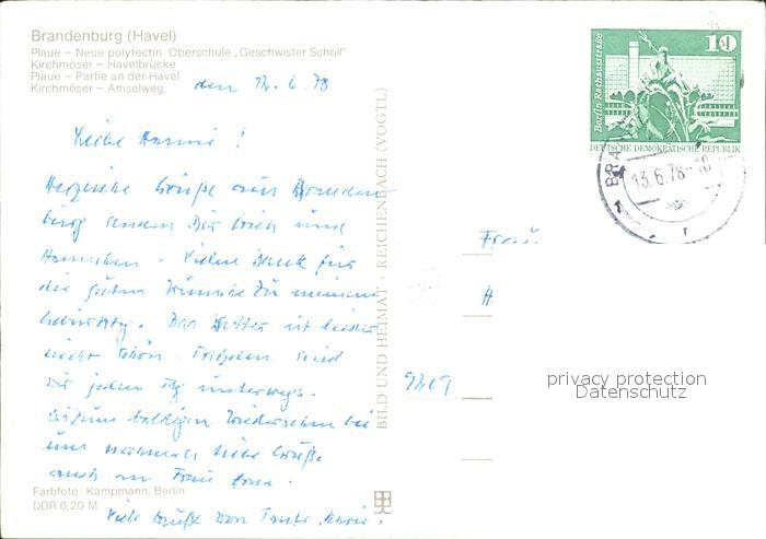 72410361 alte Postkarte Brandenburg Havel Plaue Kirchmoser Havelbruecke Amselweg postalisch gelaufen Erhaltung siehe scans KatCode: 11110012051000