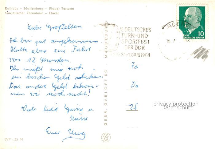 73049593 alte Postkarte Brandenburg Havel Rathaus Marienberg Plauer Torturm postalisch gelaufen Erhaltung siehe scans [PaolaD17] KatCode: 11110012051000