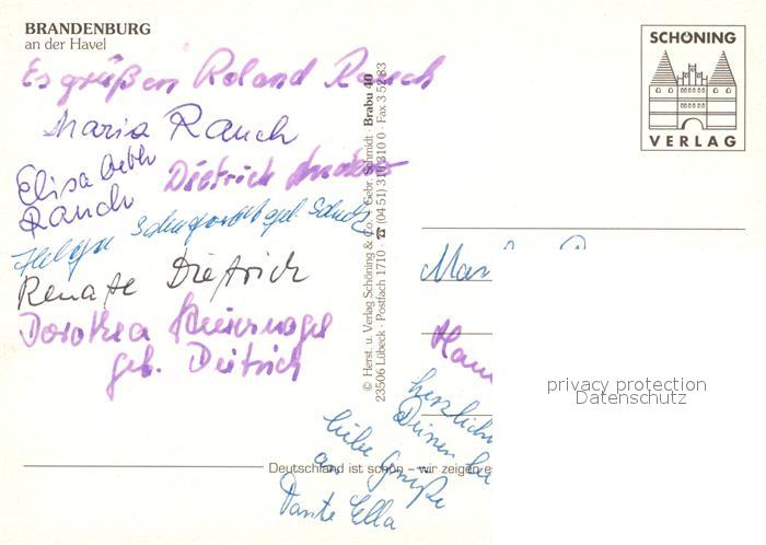 73265968 Brandenburg Havel Rathaus St Gotthardtkirche Anlegestelle Havel Steintorturm Wappen Krone postalisch nicht gelaufen Erhaltung siehe scans [FriedD77] KatCode: 11110012051000