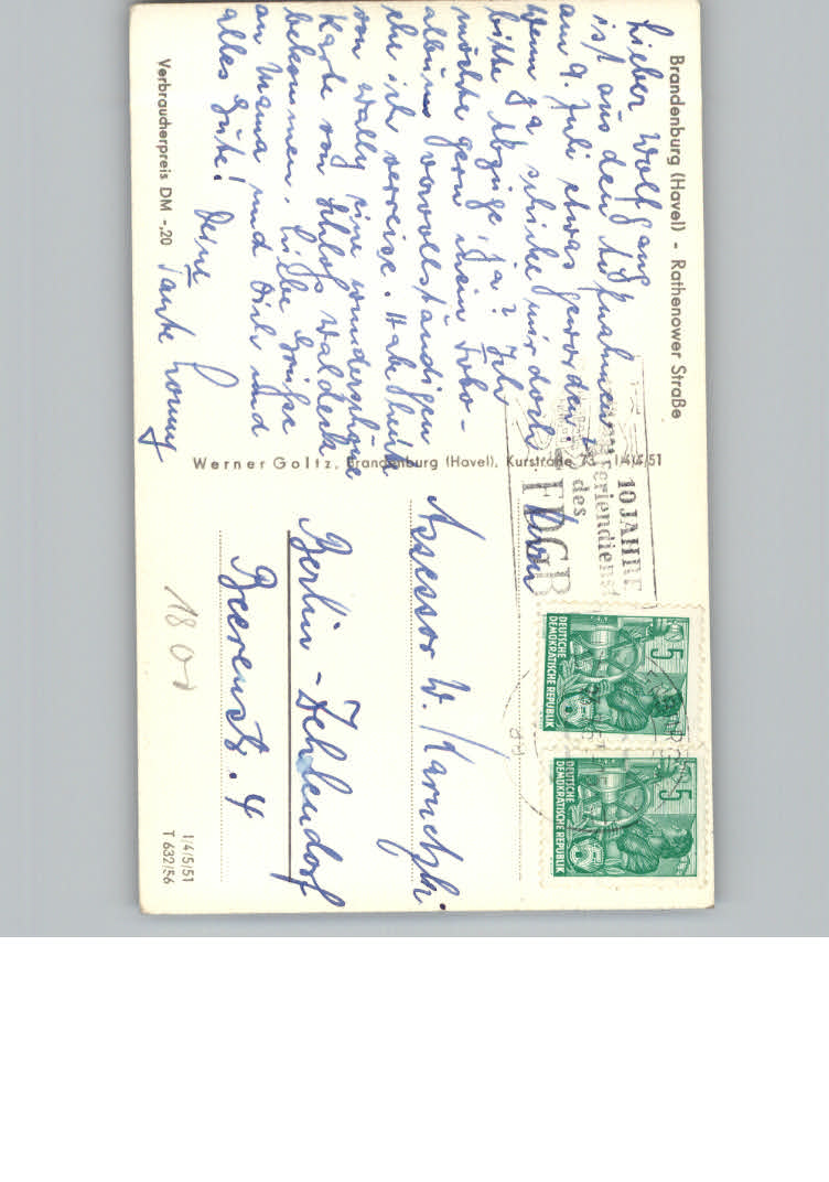 31179612 Brandenburg Havel Rathenower Strasse postalisch nicht gelaufen KatCode: 11110012051000