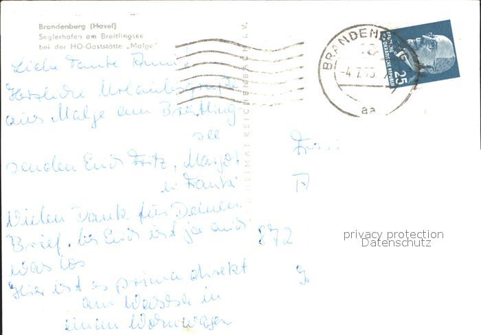 72227735 alte Postkarte Brandenburg Havel Seglerhafen am Breitlingsee postalisch gelaufen Erhaltung siehe scans KatCode: 11110012051000