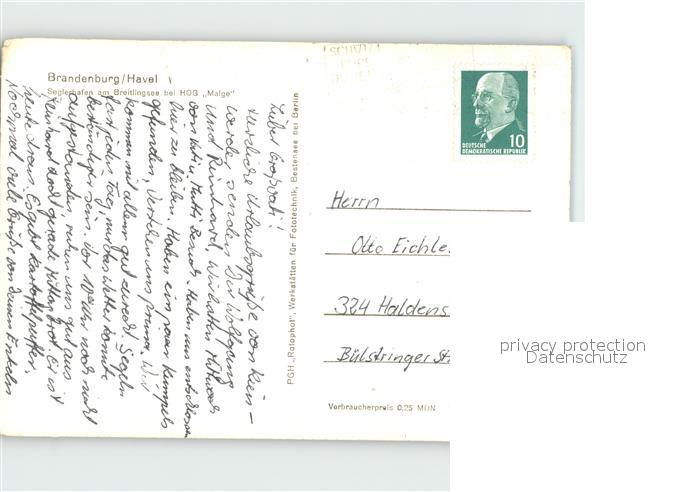 72143835 alte Postkarte Brandenburg Havel Seglerhafen am Breitlingsee HOG Malge postalisch gelaufen Erhaltung siehe scans KatCode: 11110012051000