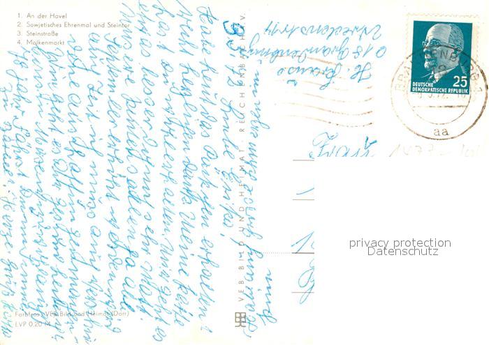 73107326 alte Postkarte Brandenburg Havel Sowjetisches Ehrenmal Steintor Molkenmarkt postalisch gelaufen Erhaltung siehe scans [NatalD47] KatCode: 11110012051000