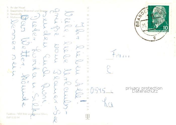 73124345 alte Postkarte Brandenburg Havel Sowjetisches Ehrenmal Steintor Steinstrasse Molkenmarkt postalisch gelaufen Erhaltung siehe scans [KathaD81] KatCode: 11110012051000
