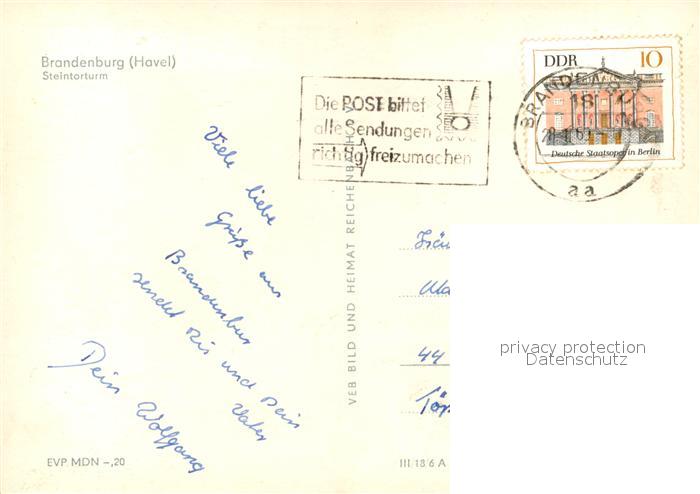73132366 alte Postkarte Brandenburg Havel Steintorturm postalisch gelaufen Erhaltung siehe scans [FriedD77] KatCode: 11110012051000