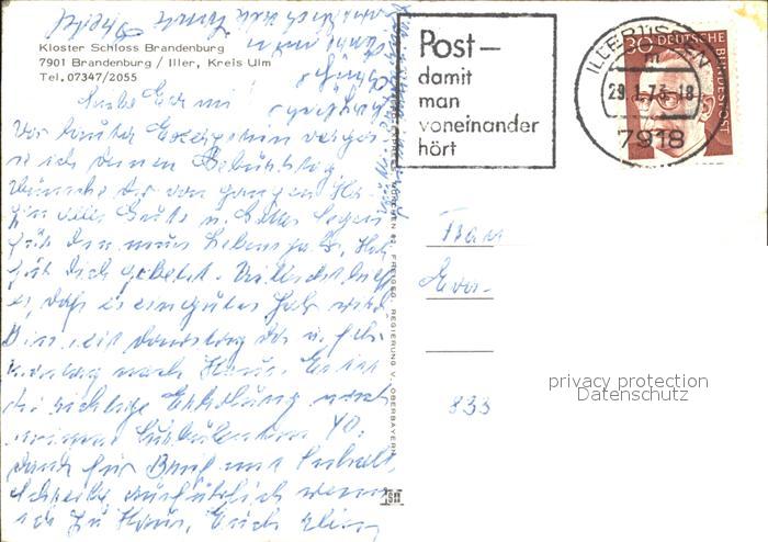 72470736 alte Postkarte Brandenburg Iller Kloster Schloss Brandenburg Fliegeraufnahme postalisch gelaufen Erhaltung siehe scans KatCode: 11110008425028