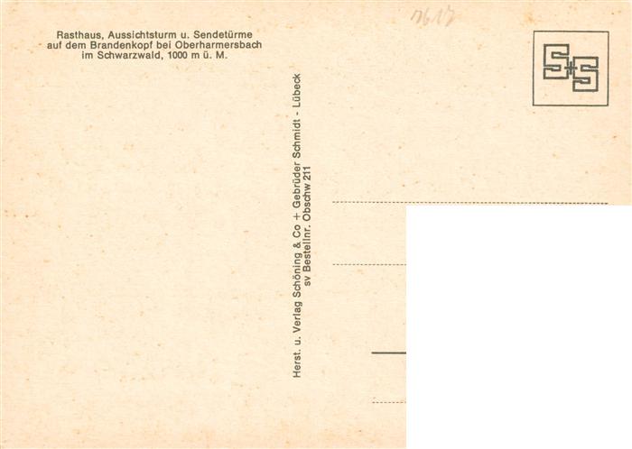73930840 Brandenkopf Rasthaus Aussichtsturm Sendetuerme postalisch nicht gelaufen Erhaltung siehe scans [FriedD77] KatCode: 11110008317088