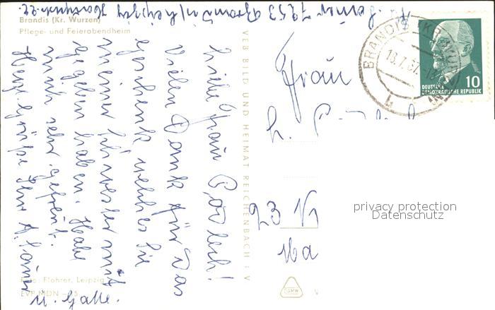 72078051 alte Postkarte Brandis Wurzen Pflegeheim Feierabendheim Teich postalisch gelaufen Erhaltung siehe scans KatCode: 11110014383060