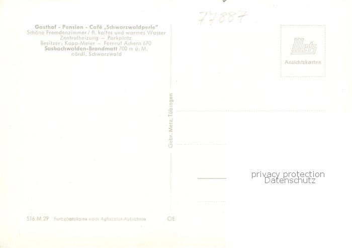 73853565 Brandmatt Sasbachwalden Gasthof Pension Schwarzwaldperle postalisch nicht gelaufen Erhaltung siehe scans [WerneD78] KatCode: 11110008317118