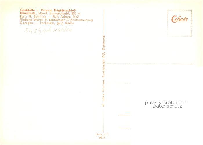 73862996 Brandmatt Sasbachwalden Gaststaette Pension Brigittenschloss Gastraum Fremdenzimmer Luftaufnahme postalisch nicht gelaufen Erhaltung siehe scans [FriedD77] KatCode: 11110008317118
