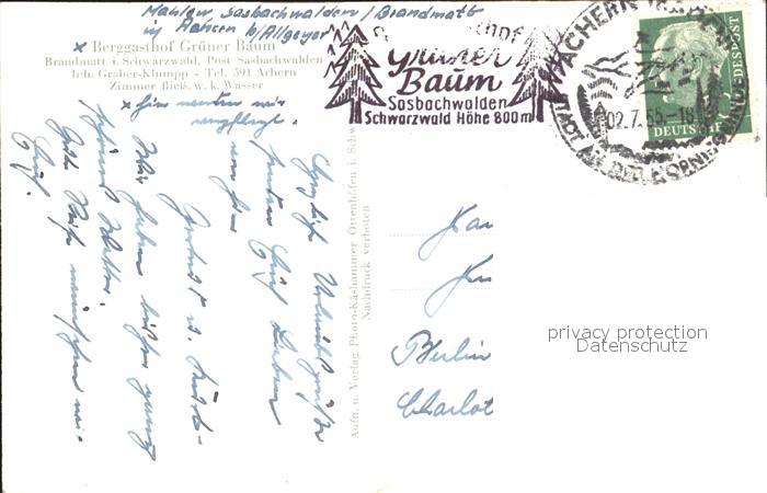 32158875 alte Postkarte Brandmatt Schwarzwald Berggasthof Gruener Baum postalisch gelaufen Erhaltung siehe scans KatCode: 11110008317118