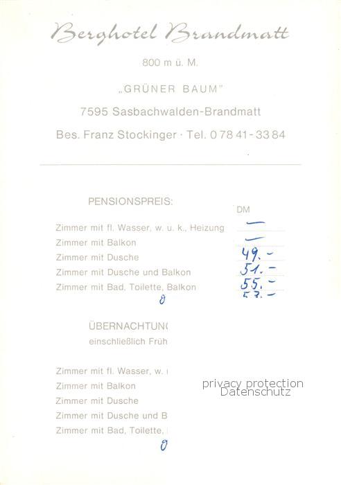 73833416 Brandmatt Schwarzwald Berghotel Brandmatt postalisch nicht gelaufen Erhaltung siehe scans [WerneD78] KatCode: 11110008317118