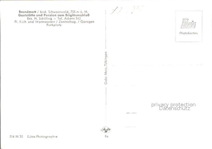 41768144 Brandmatt Schwarzwald Gaststaette Pensio zum Brigettenschloss postalisch nicht gelaufen Erhaltung siehe scans KatCode: 11110008317118