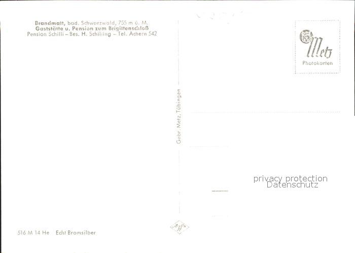 41768145 Brandmatt Schwarzwald Gaststaette zum Brigittenschloss postalisch nicht gelaufen Erhaltung siehe scans KatCode: 11110008317118