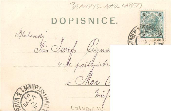 old postcard Brandys nad Labem-Stara Boleslav Brandeis Elbe CZ Pozdrav z Brandysa postalisch gelaufen Erhaltung siehe scans [FriedD77]