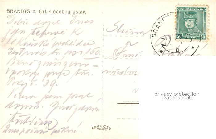 old postcard Brandys nad Orlici Lecebny ustav postalisch gelaufen Erhaltung siehe scans [WerneD78]