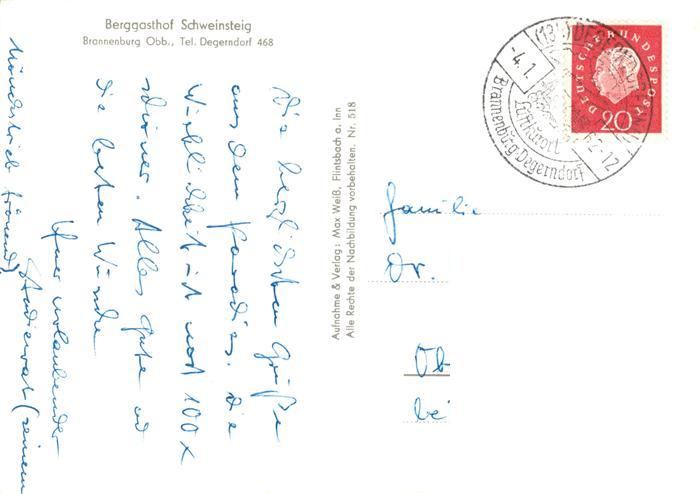 73880156 alte Postkarte Brannenburg Berggasthof Schweinsteig Winterlandschaft postalisch gelaufen Erhaltung siehe scans [FriedD77] KatCode: 11110009187120