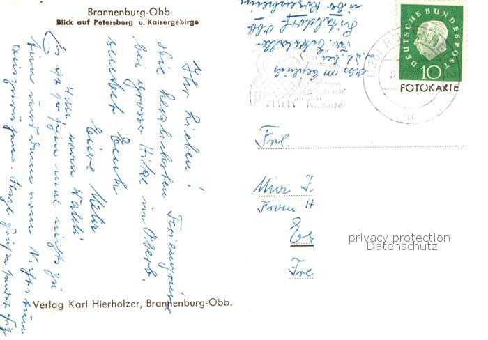 73135729 alte Postkarte Brannenburg Blick auf Petersberg und Kaisergebirge Fliegeraufnahme postalisch gelaufen Erhaltung siehe scans [FriedD77] KatCode: 11110009187120