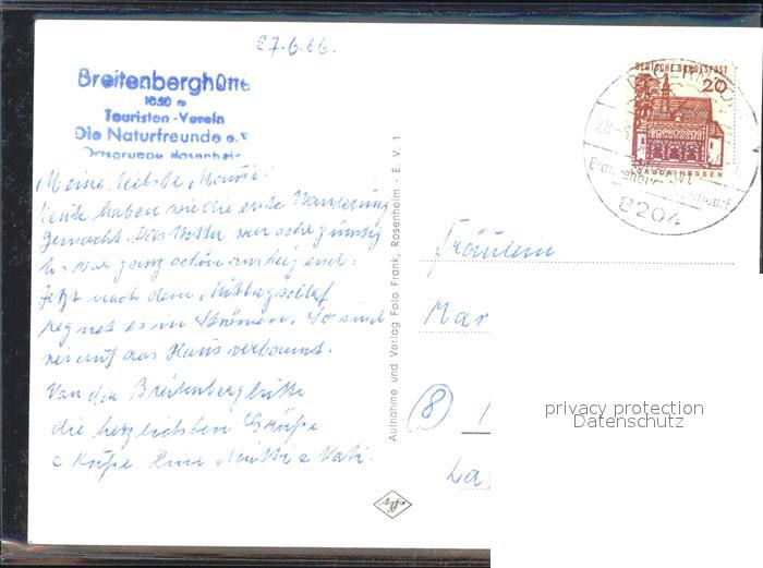 72143132 alte Postkarte Brannenburg Breitenberghuette postalisch gelaufen Erhaltung siehe scans KatCode: 11110009187120
