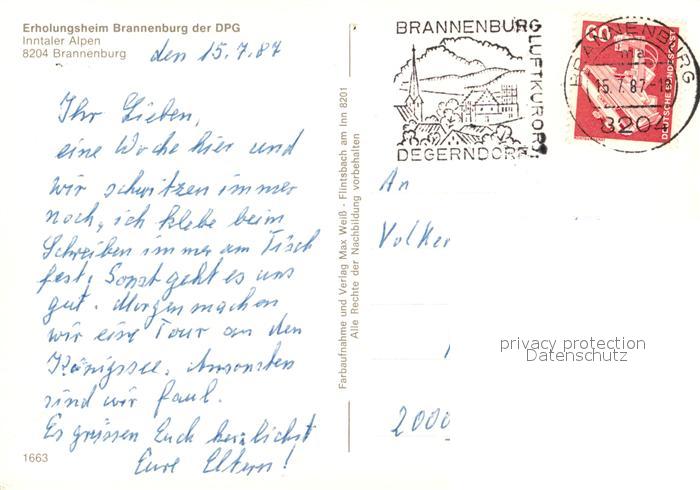 73112036 alte Postkarte Brannenburg Erholungsheim Brannenburg der DPG postalisch gelaufen Erhaltung siehe scans [NatalD47] KatCode: 11110009187120