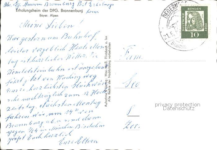 72064826 alte Postkarte Brannenburg Erholungsheim der DPG Panorama Bayerische Alpen postalisch gelaufen Erhaltung siehe scans KatCode: 11110009187120
