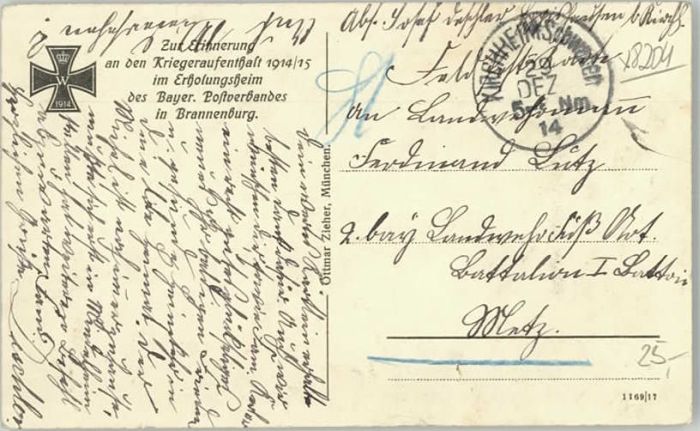 40208505 Brannenburg Feldpost Erholungsheim x 1914 KatCode 11110009187120