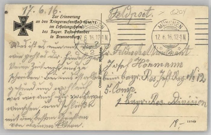 40208347 Brannenburg Feldpost Erholungsheim x 1916 KatCode 11110009187120